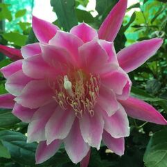 The leaves are flat and fleshy, long and glossy. They are interspersed with deep lobes.