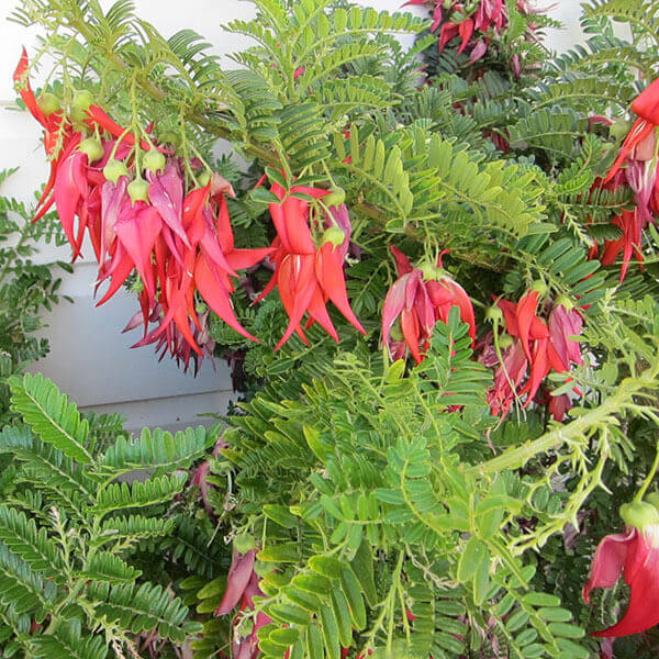 Clianthus Puniceus Red Form - Striking red 5 - 10cm Scarlet Pea shaped flowers.